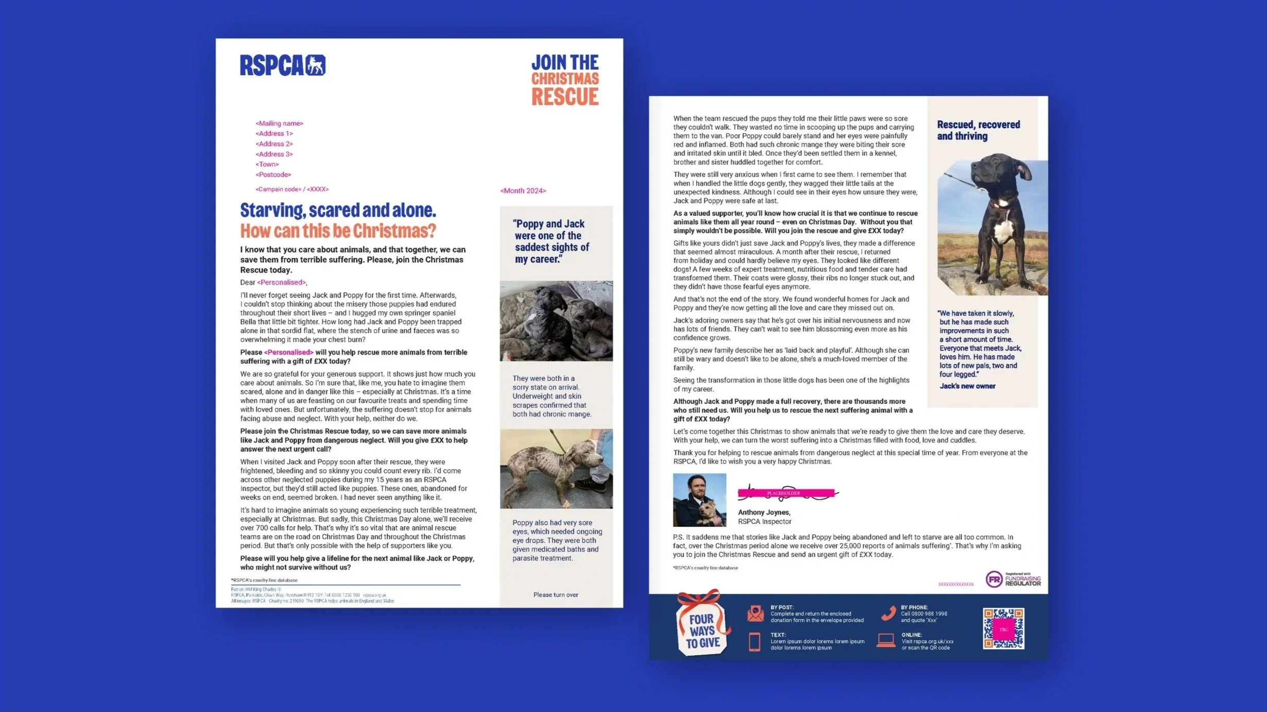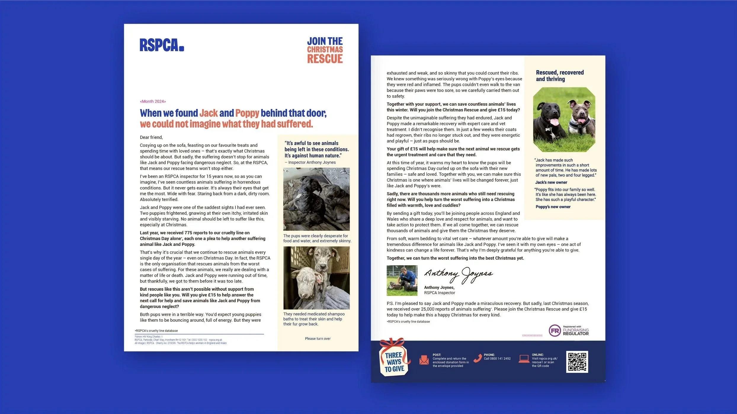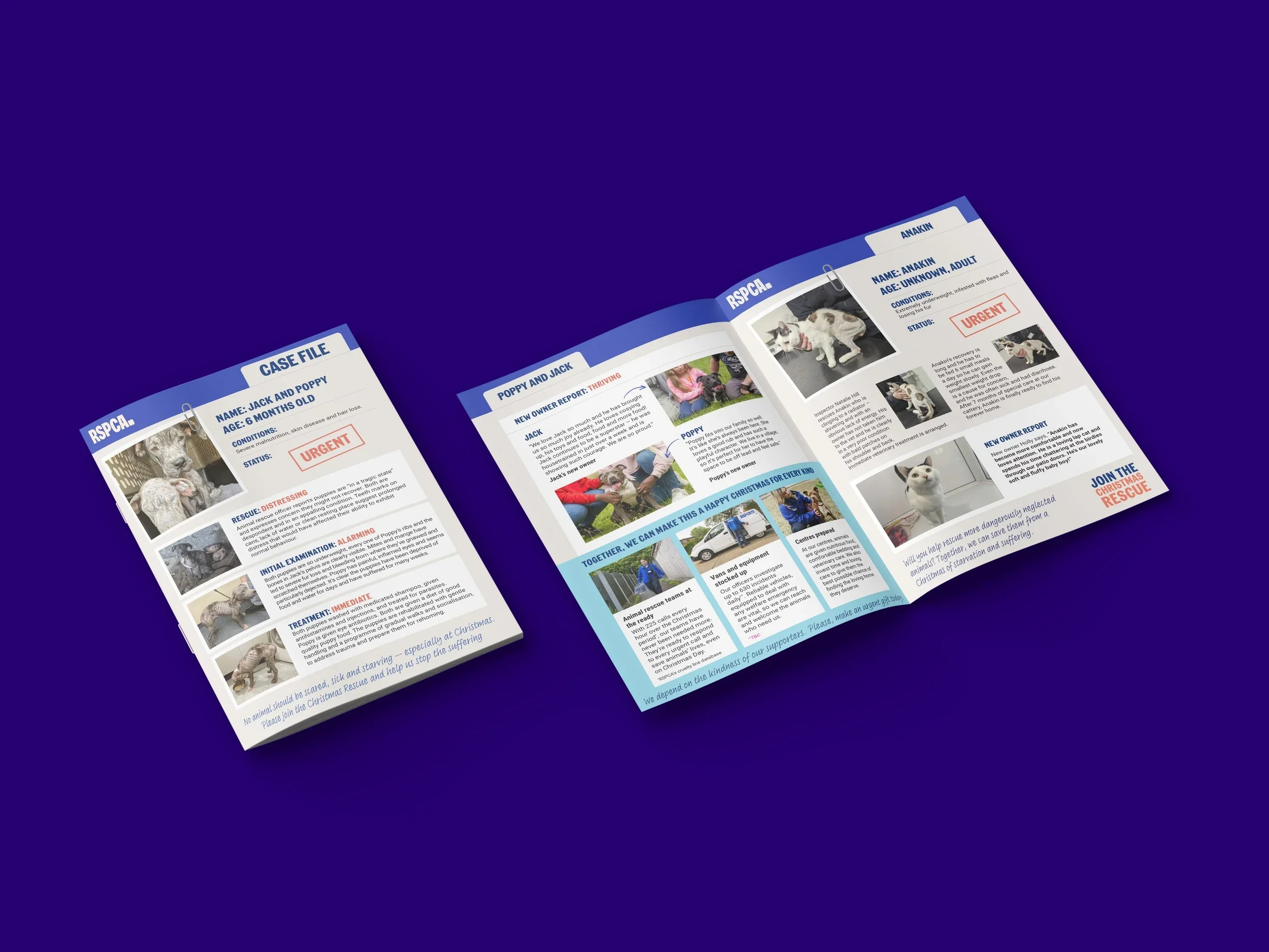 Once inside the pack, we used every fundraising trick in the book. Visceral, heart-wrenching case study details. Urgent phoneline stats. A sense of nationwide collective action that makes you want to ‘Join the Christmas Rescue’. All wrapped up in a clean, skimmable design.